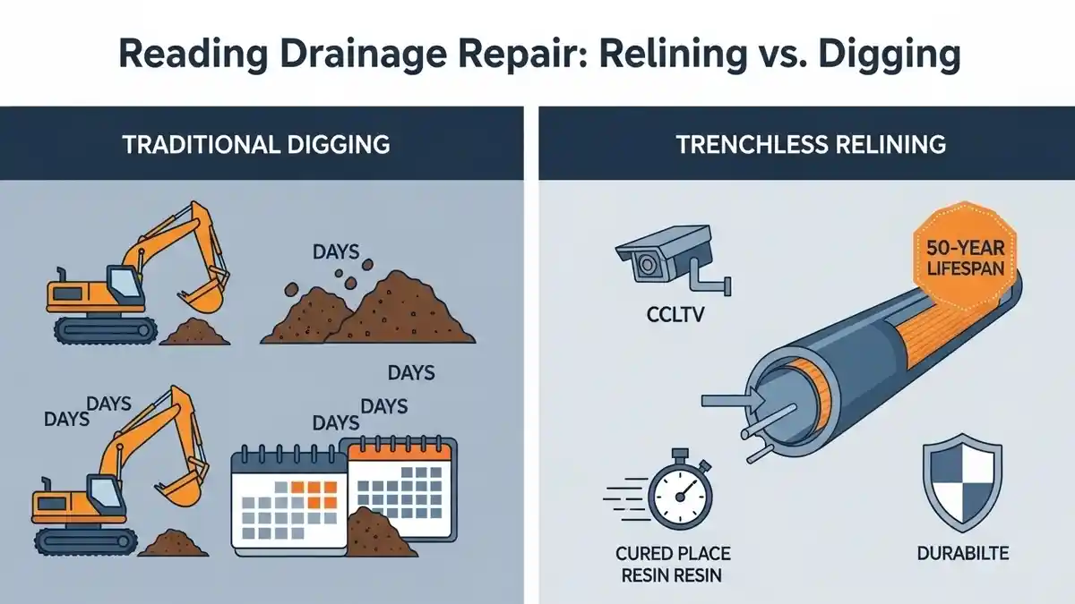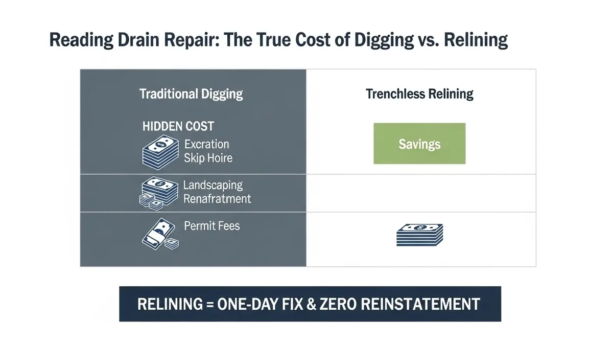 Avoid costly, messy excavations. Compare Hampstead Drain Relining vs Digging to save your home, time, and money with our expert, minimally invasive, and durable no-dig repair solutions for local drains.